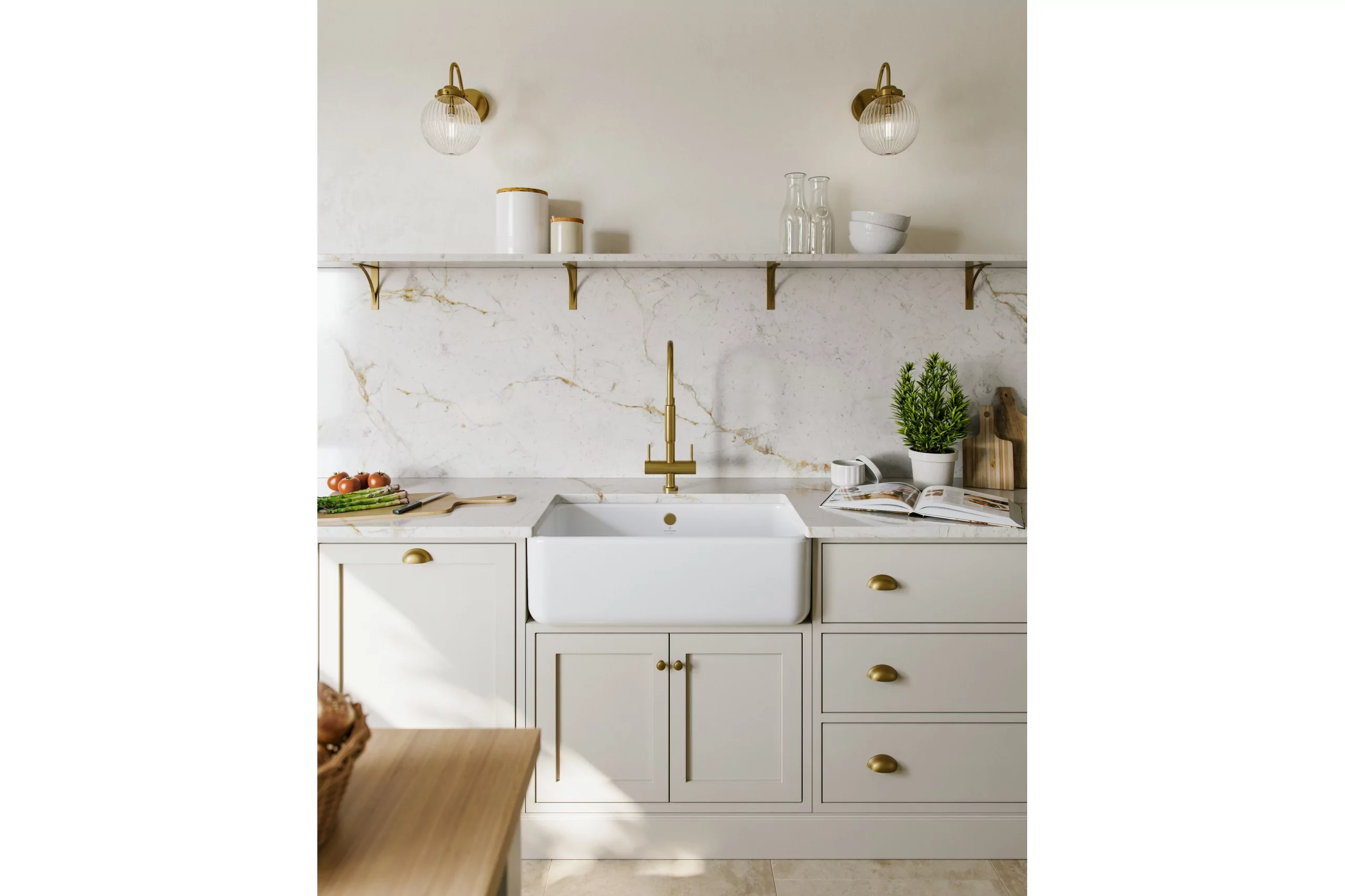 The Samlesbury — our largest single bowl sink, combining apron-front elegance with deep, spacious design for effortless handling of all your kitchen tasks.