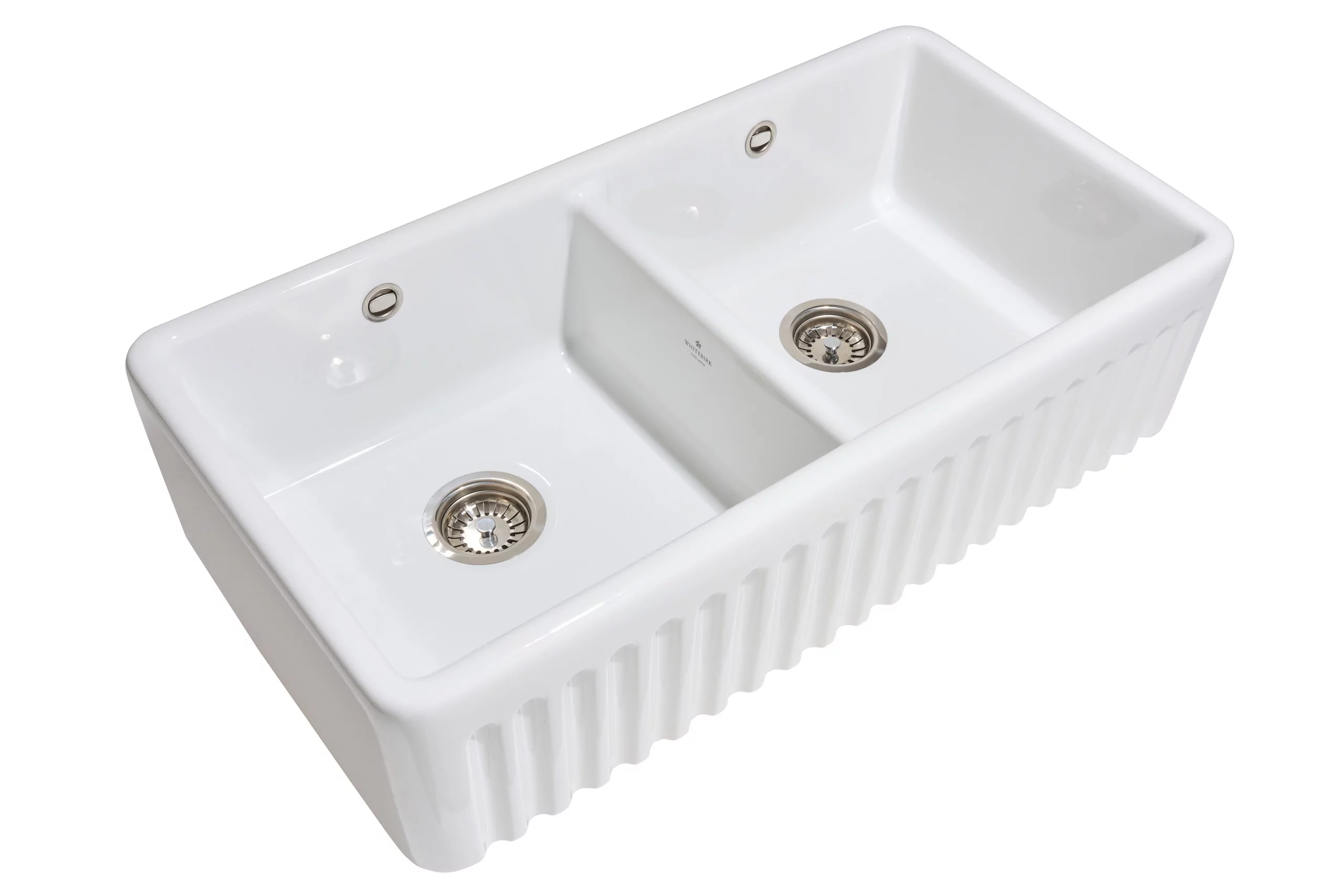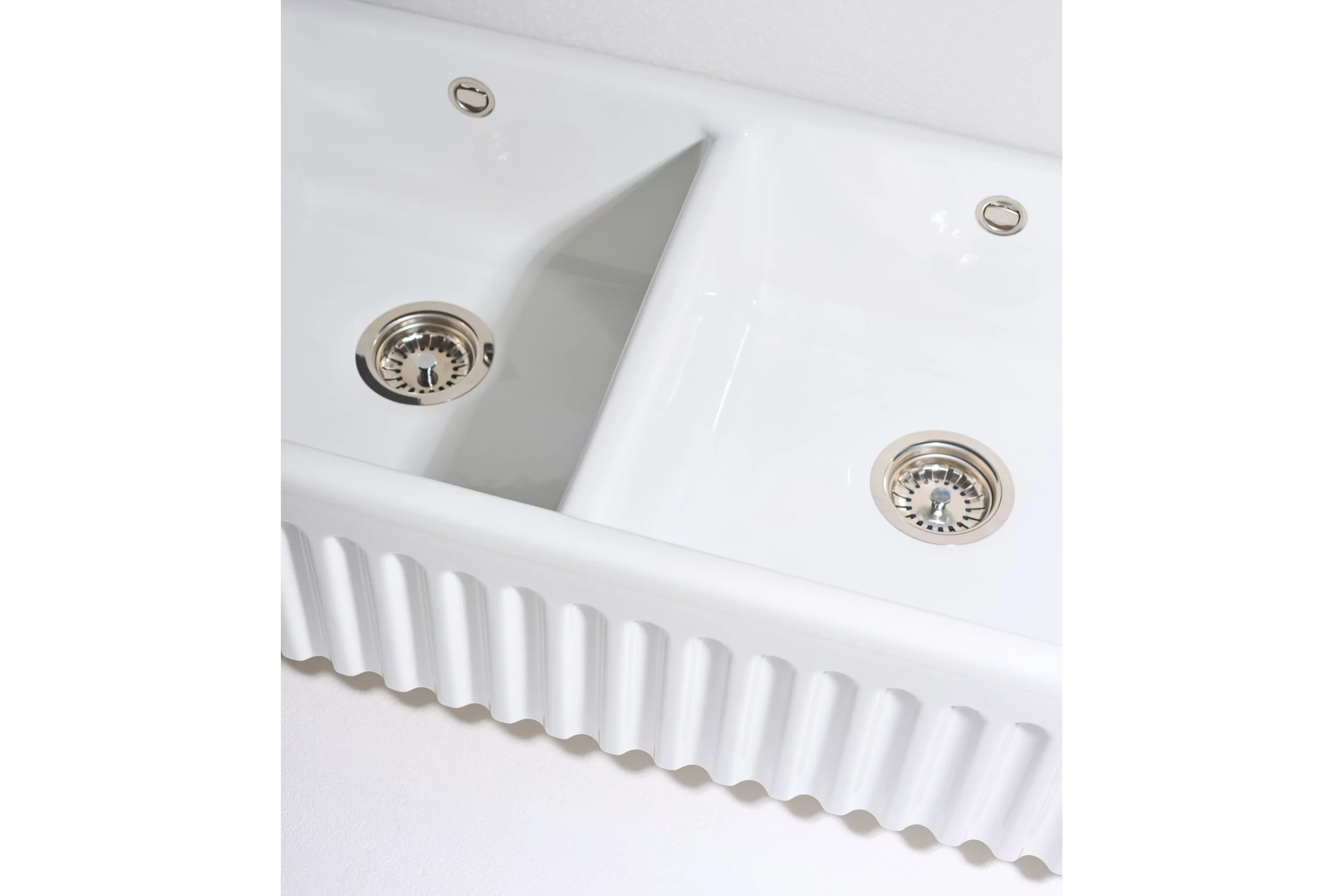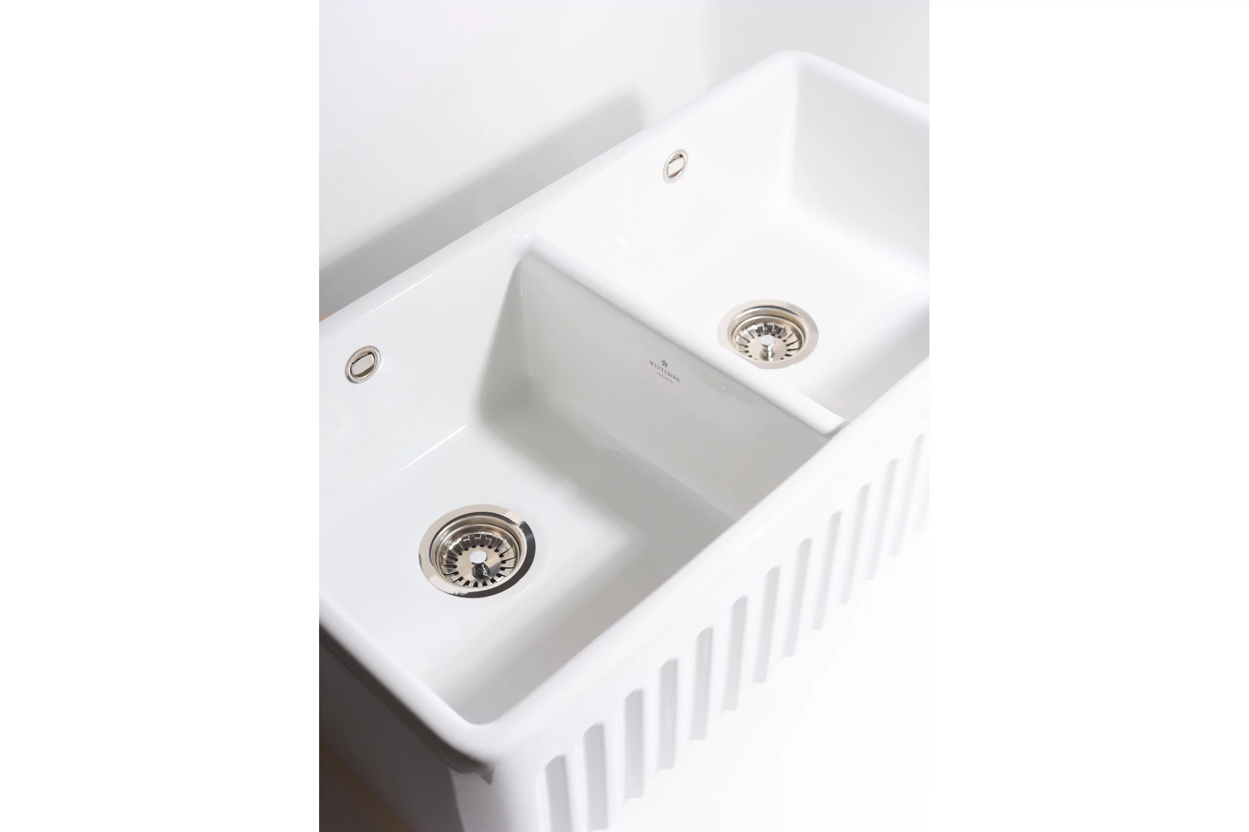 With its bold fluted front, spacious double bowls, and practical lower partition, the Warton combines sophistication and functionality for a standout kitchen feature.
