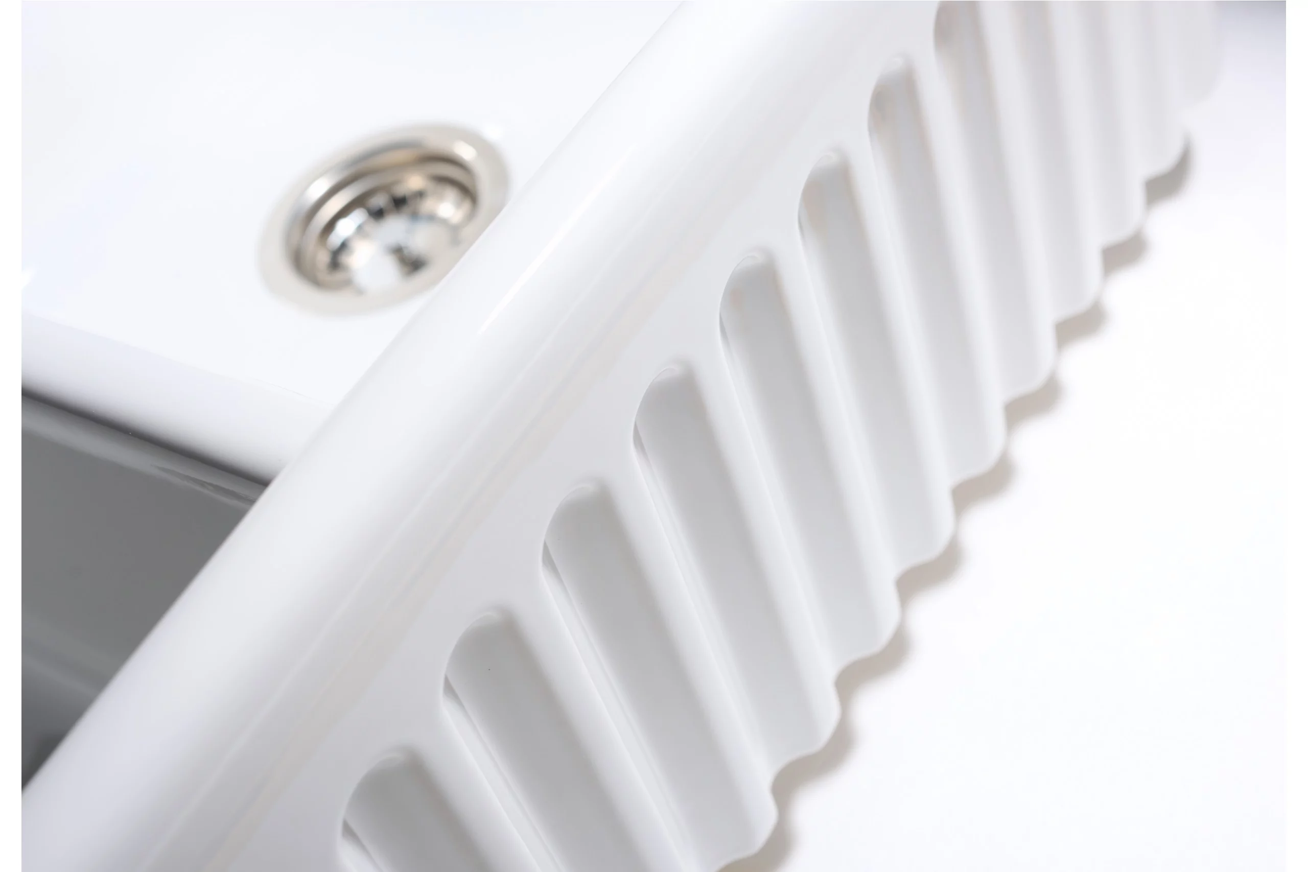Elevate your kitchen with the elegance and practicality of the Warton sink. Its prominent fluted front and spacious double bowl configuration lend the Warton a distinctive allure that captures attention in any kitchen setting. The cleverly designed lower partition wall between the bowls adds to its practicality, simplifying your daily kitchen chores. Discover the beauty and multifunctionality of the Warton, infusing your kitchen with a blend of sophistication and efficiency.