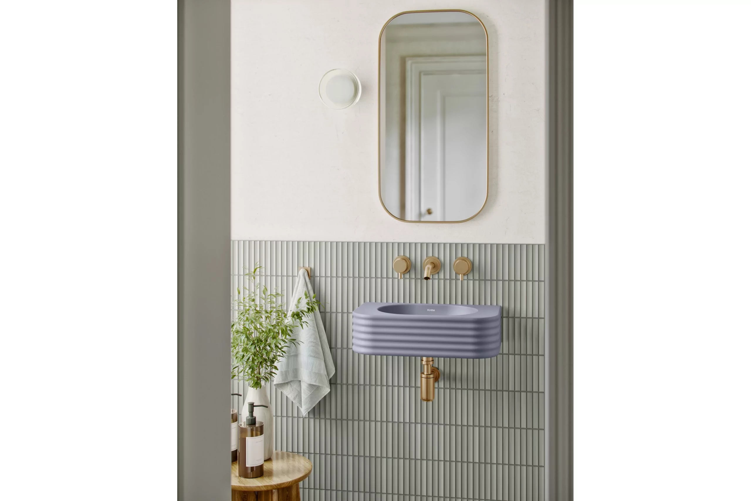 Liliano introduces subtle depth through its corrugated surface, designed specically for smaller interiors. Compact and wall-mounted, it's offered in two muted colourways, ideal for adding texture to cloakrooms or powder rooms without overpowering the space.