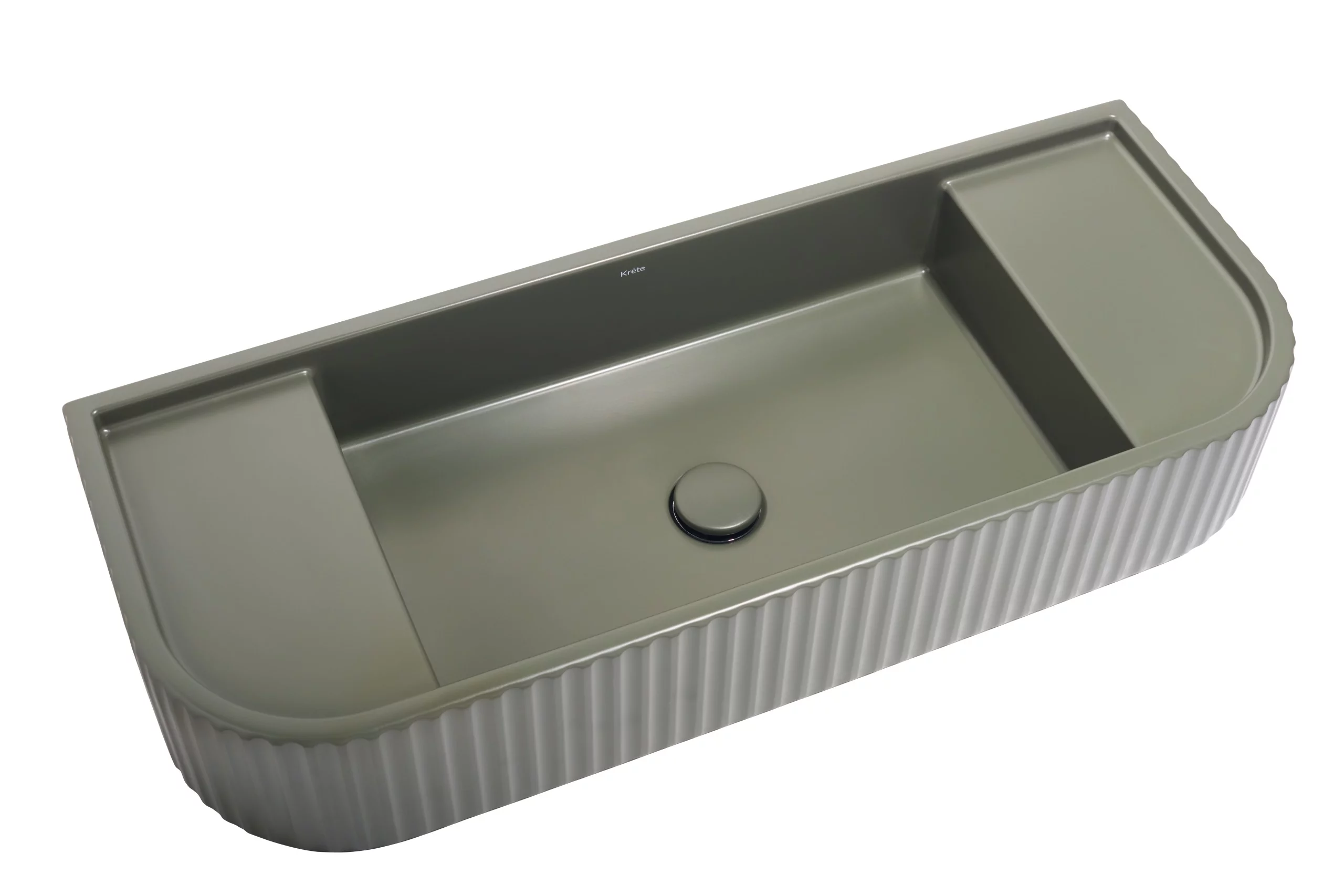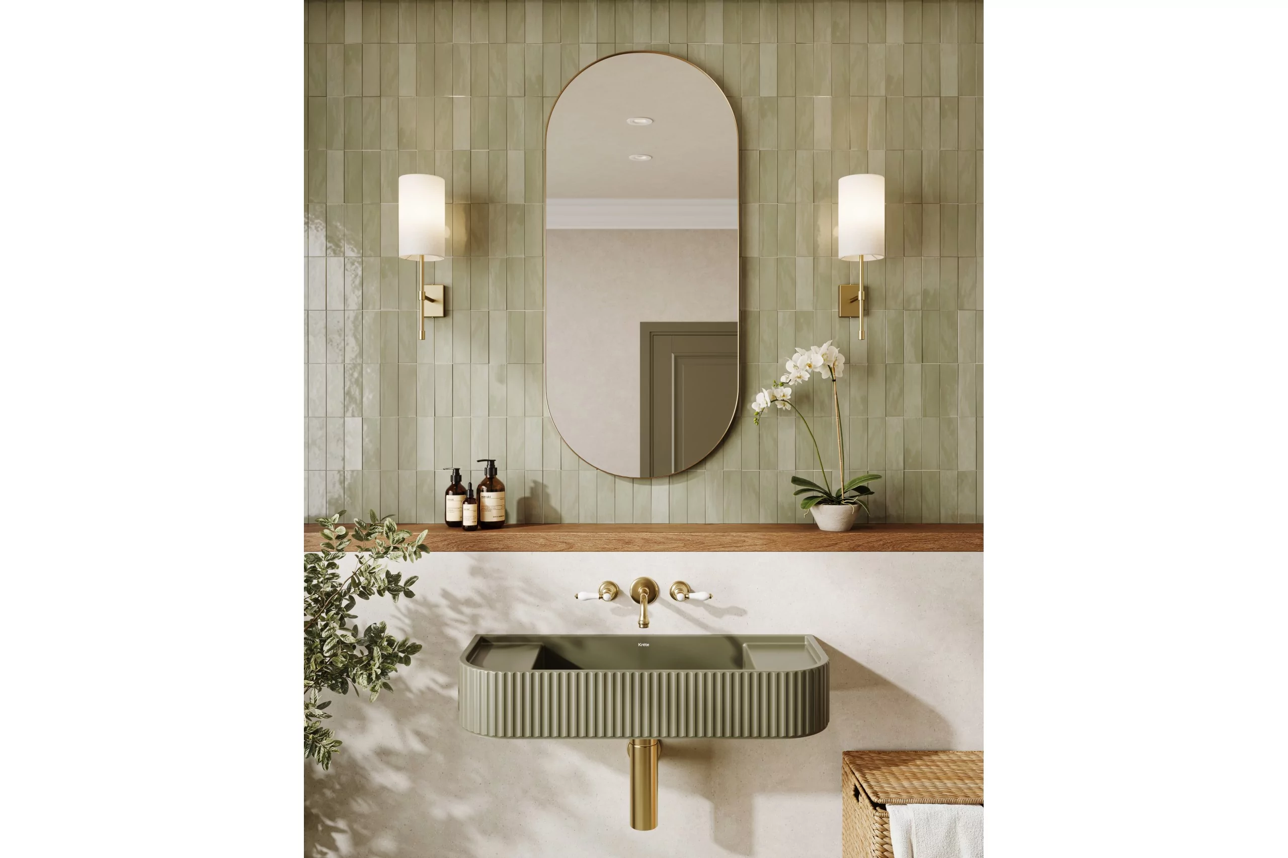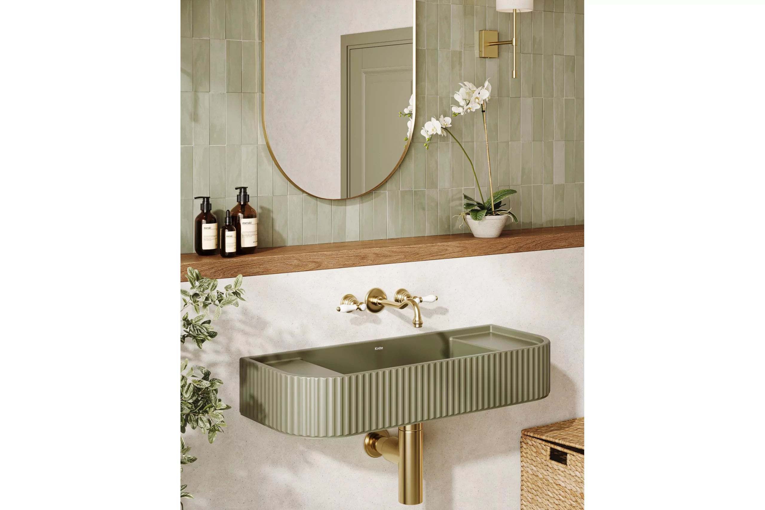 Samaria features a gently arched basin with refined fluting and a recessed vanity ledge for everyday essentials. Suitable for wall or surface installation and available in six contemporary shades, it delivers both sculptural presence and everyday function.