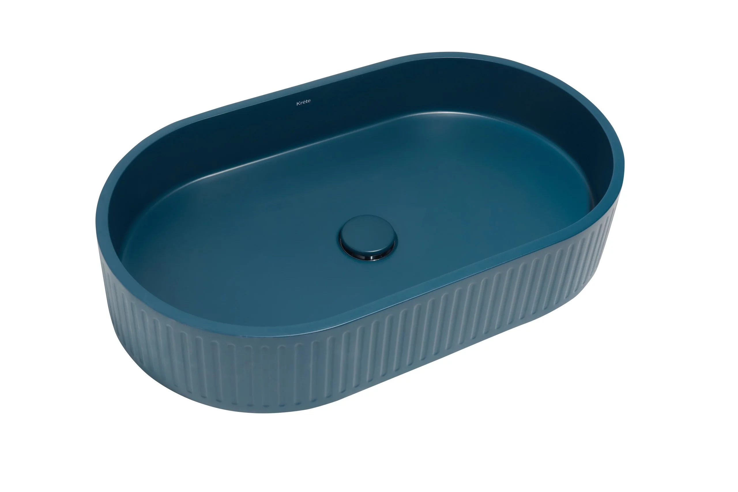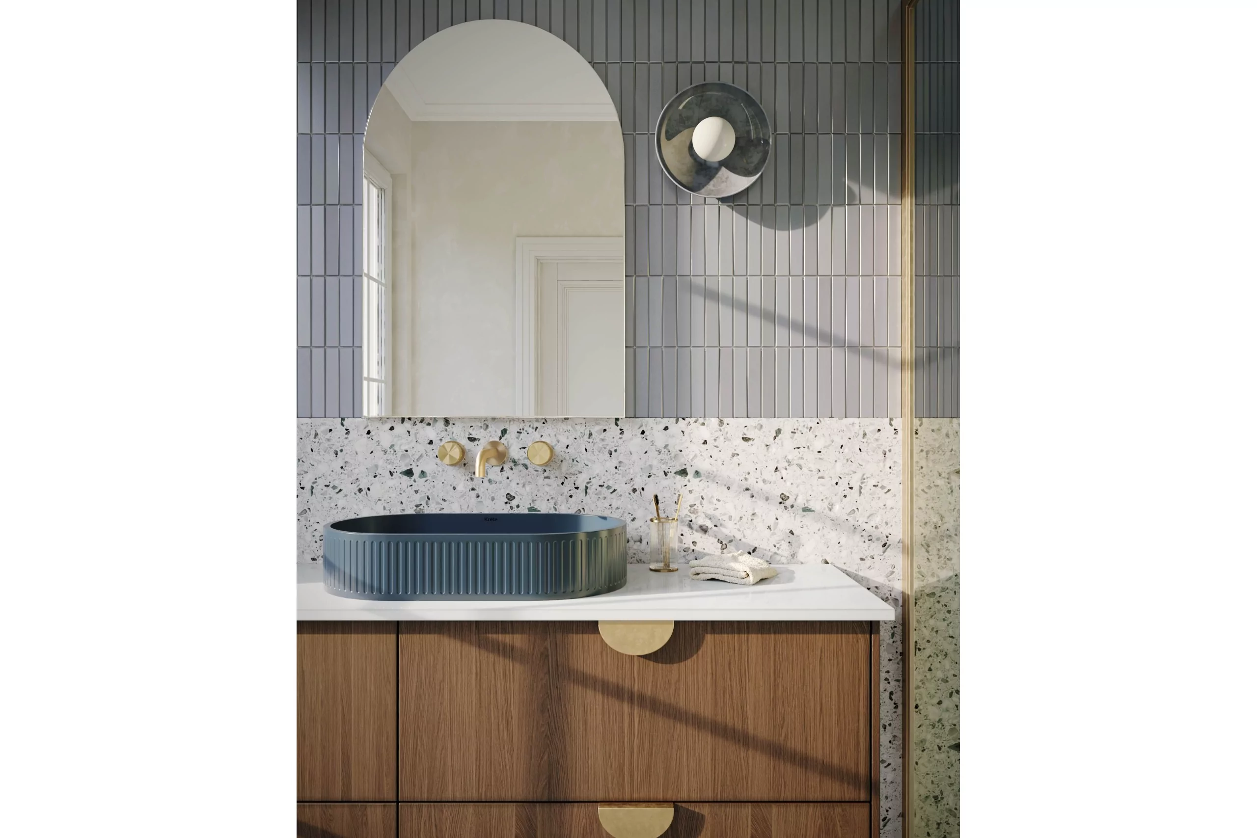 Marathi's soft curves and fluted detailing create a smooth, elegant form that plays with light and shadow. At 600 mm wide, it offers generous comfort. Surface-mounted with a colour-matched waste kit, it suits interiors balancing form and function.