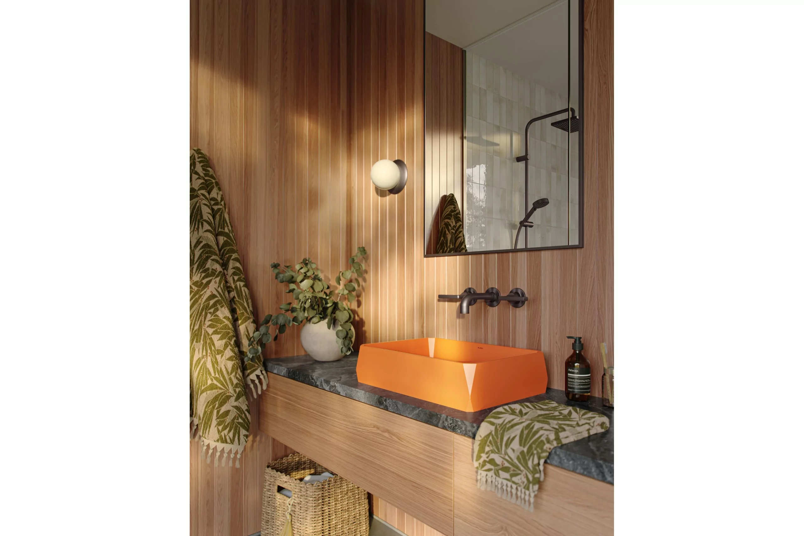 Loutro's faceted corners and clean geometry create a bold, spacious form. At 500 mm wide, its surface-mounted with a colour-matched waste kit. Overflow-free and available in six shades plus Terrazzo, it blends form, scale, and material for modern interiors.