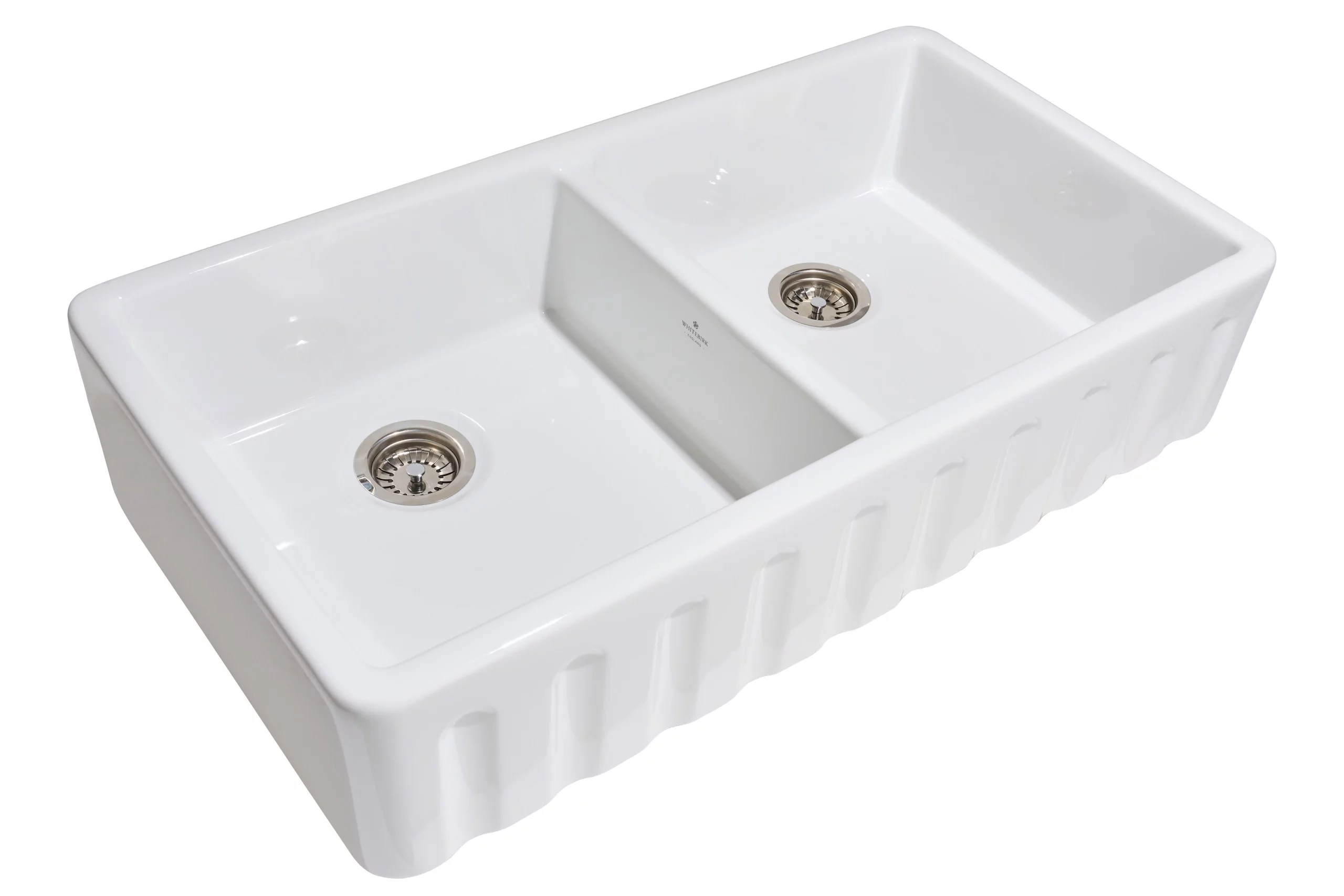 Featuring an exposed fluted front, spacious double bowls, and a practical lowered divider, the Trawden brings farmhouse charm and everyday functionality to modern kitchens.1